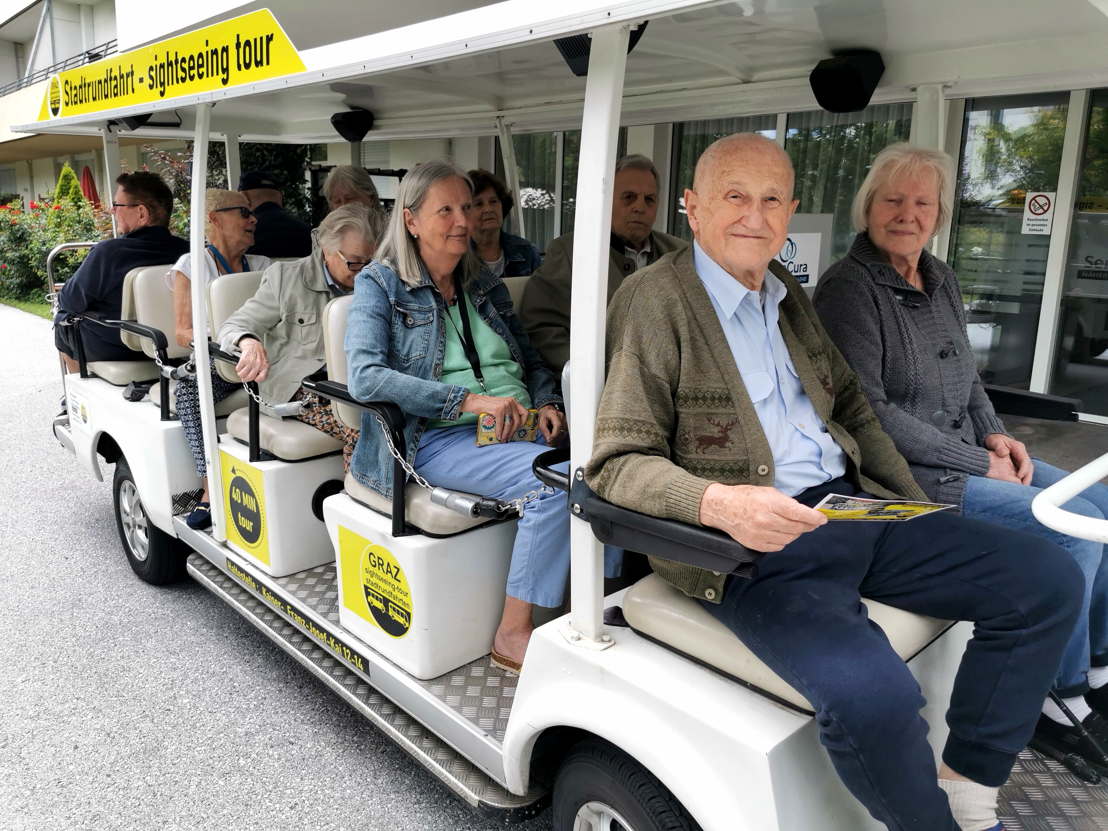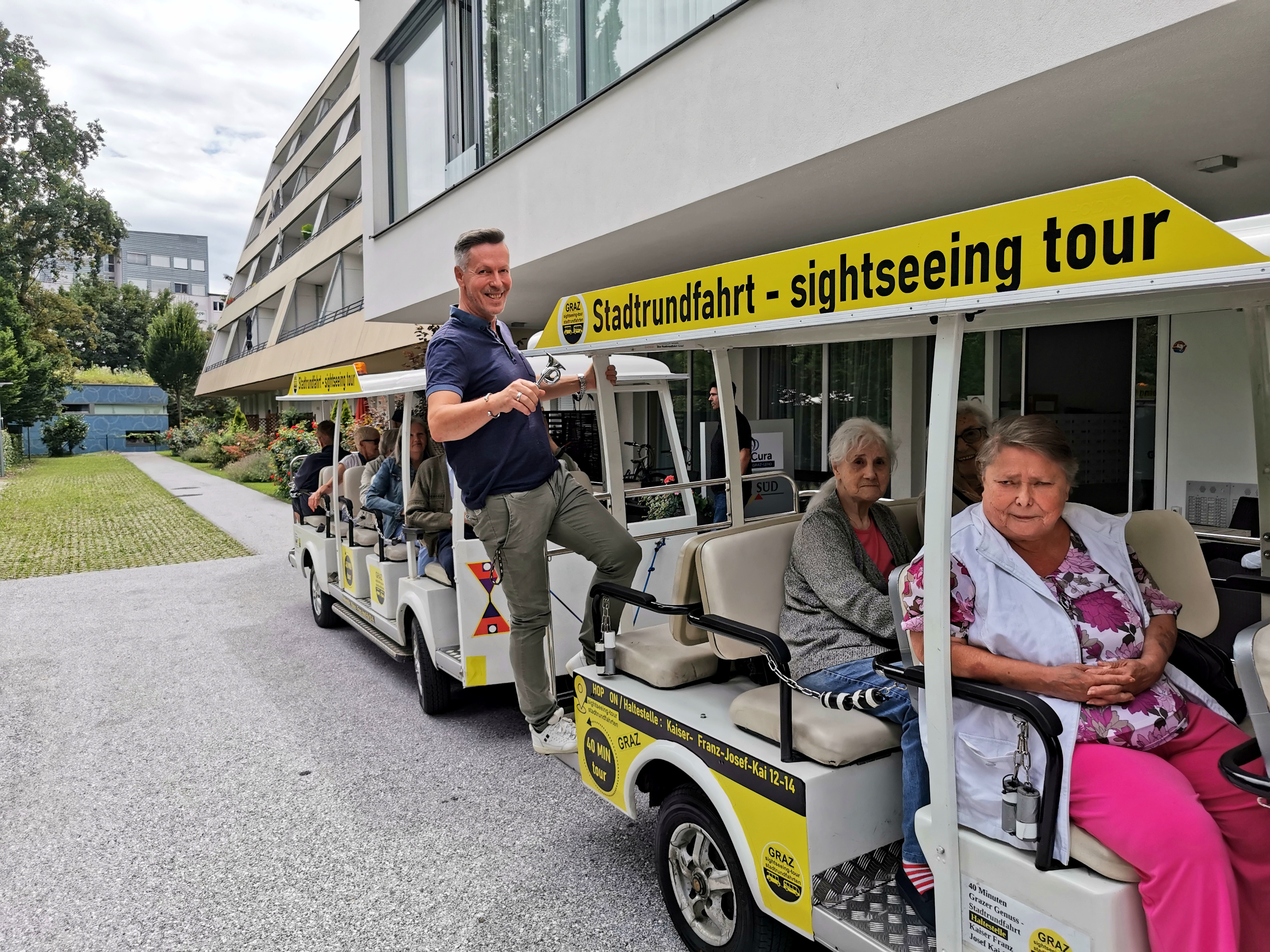 Wenn der Grazer Cityshuttle-Bus bis zur Haustür fährt, dann ist es für den Aktivitätenleiter des SeneCura BePartments Graz-Lend, Siegfried Rumpold, selbstverständlich, die Bewohner:innen des Hauses zu mobilisieren und den Damen und Herren eine tolle Zeit zu ermöglichen. Der Stadtpark, die Stadt und der Lend-Platz wurden wieder voller Freude entdeckt. Das ein oder andere Haus in der Stadt brachte außerdem tolle Erinnerungen hervor. Frau Spruzina war überglücklich und meinte: „Das mir das so geboten wurde, ist ein Traum. All das so zu erkunden – Vielen Dank, Senecura!“