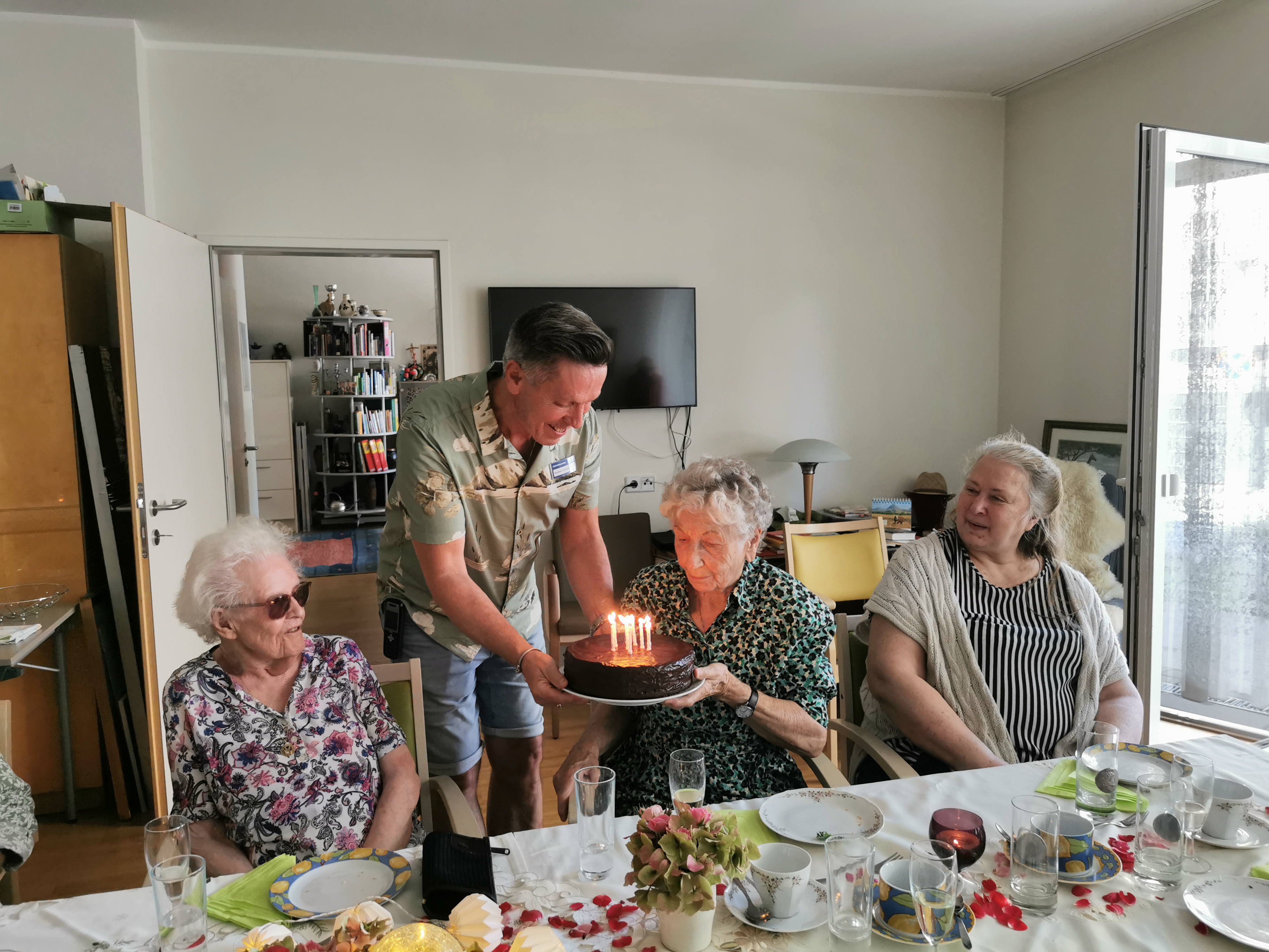 Kürzlich bat Gisela Stadelhofer, Bewohnerin der SeneCura BePartments Graz-Lend, den Aktivitätenleiter Siegfried Rumpold um Unterstützung bei der Organisation einer kleinen Feier anlässlich ihres 90. Geburtstags. Siegfried Rumpold war natürlich mit großer Freude dabei und so kümmerte er sich gerne um einen schönen und feierlichen Rahmen für den großen Tag. Zusammen mit einigen Freund:innen wurde bei Kaffee und Torte der Ehrentag von Frau Stadelhofer gefeiert und natürlich durfte auch ein Gläschen Sekt zum Anstoßen nicht fehlen. „Vielen Dank für alles! Mein runder Geburtstag wird mir noch lange in schöner Erinnerung bleiben.“, sagte Frau Stadelhofer gerührt.