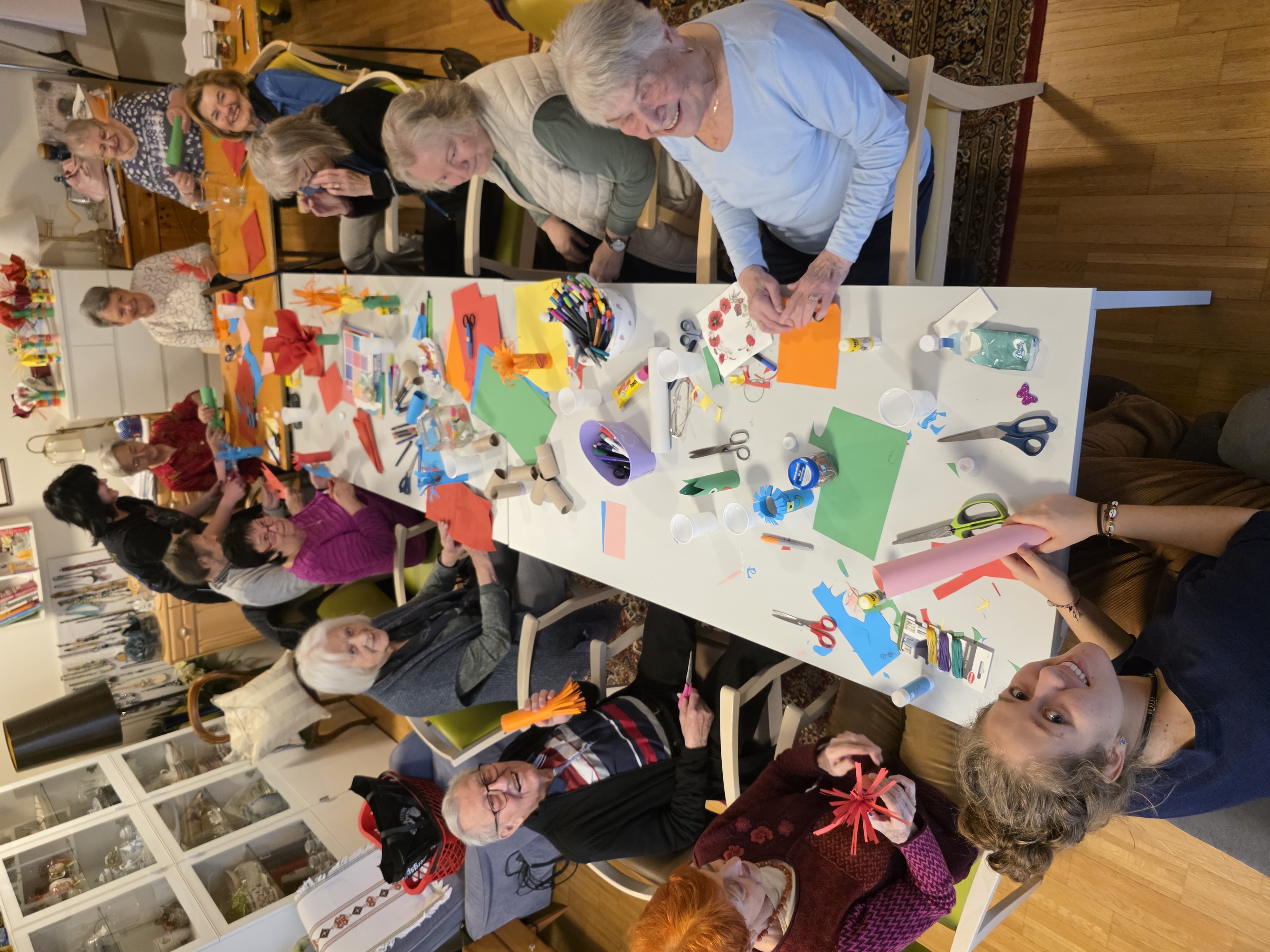 Unterstützt wurden sie dabei von zwei jungen Damen, die im Rahmen eines Schulprojekts ein soziales Projekt umsetzen. Mit viel Kreativität, Farbe und Humor entstanden lustige Tischgestaltungen, die nun für närrische Stimmung im Haus sorgen.
